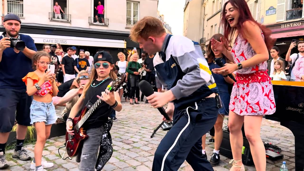 Directed by musician Julien Cohen, the stunt featured fellow Britain’s Got Talent contestant Olly Pearson on guitar and an opera choir that spilled out of windows and cafés to join the spectacle.