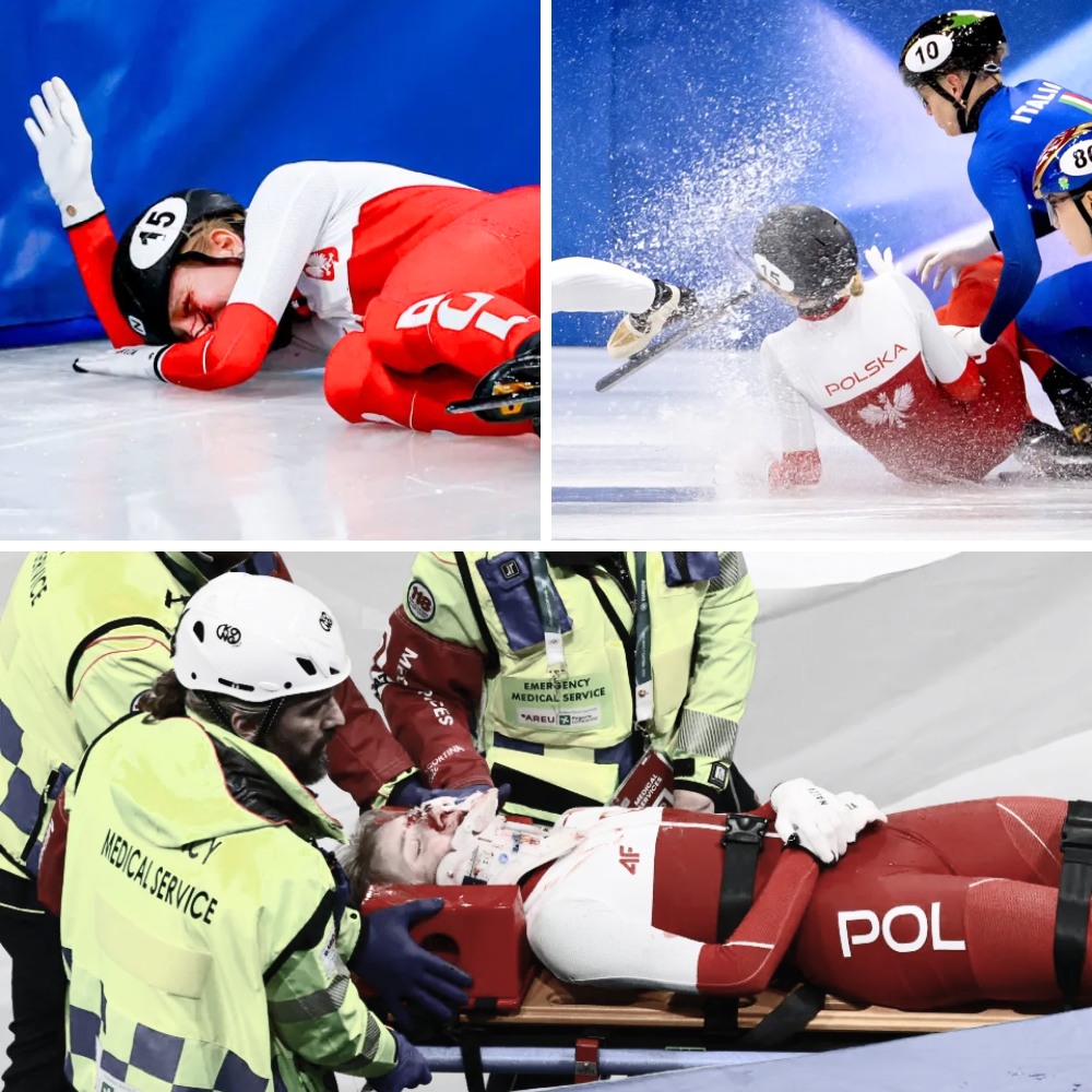 Medics rushed to assist Kamila Sellier after her horror collision in the track speed skating quarter-final.